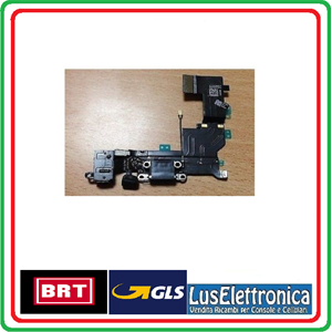 FLAT CONNETTORE RICARICA CARICA PER IPHONE 5S NERO DATI MICROFONO + JACK CUFFIA